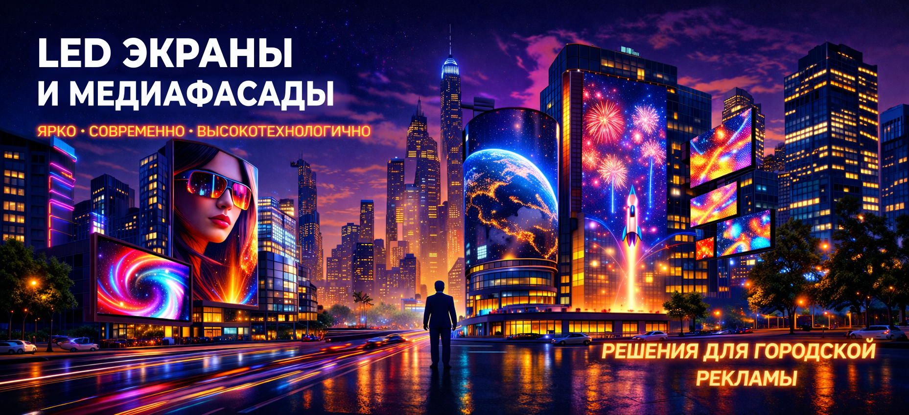 Идеально подходят для оформления фасадов, так как легко адаптируются к архитектурным особенностям здания, обеспечивая яркое изображение, высокую видимость и современный внешний вид