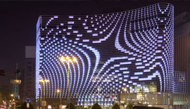 Возможности Led-технологии позволяют интегрировать визуальные, видео и анимационные изображения с архитектурным обликом здания. Медиафасады – светодиодные инсталляции, с помощью которых достигается ярко выраженная художественность и декоративная эффектность объекта, создаётся его определённый имидж.
